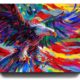 The Founding Fathers selected the bald eagle as the emblem of America. This bird’s fierce beauty and proud independence symbolize courage, strength, and freedom. The powerful open wings and the piercing eye show readiness to defend the flag and the land. Blend magically captures the majestic spirit of the bald Eagle with vivid colors and powerful strokes like the people that make up this great nation.